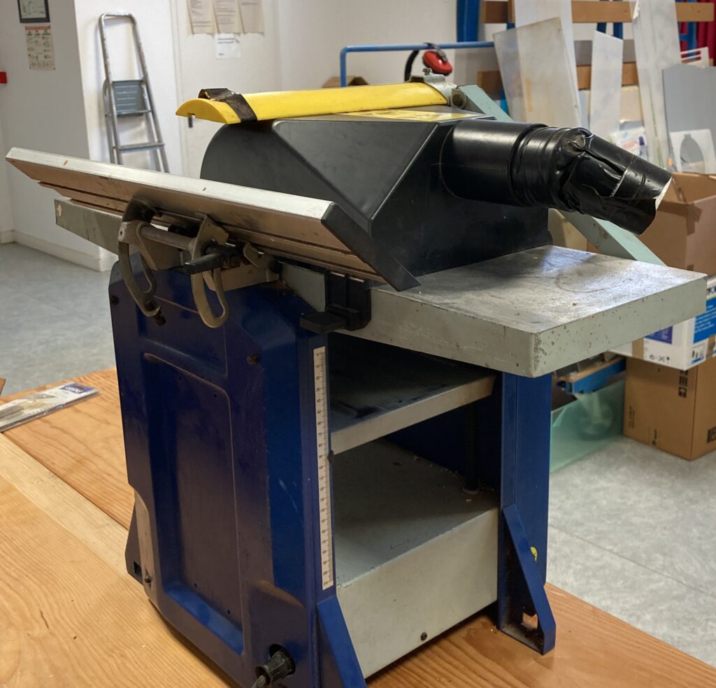 Elle dispose d’un moteur d’environ 1 500 W, de deux fers HSS de 261 x 16,5 x 1,5 mm, d’un bâti acier avec tables en fonte d’aluminium, d’un guide parallèle inclinable, et permet un rabotage de 5 à 120 mm de hauteur avec une passe jusqu’à 2 mm et une avance d’environ 6 m/min